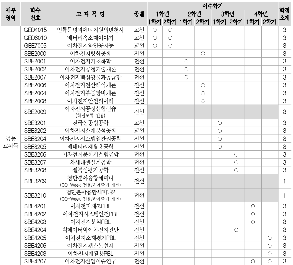 1. 첨단이차전지공학 교육과정 이수체계도